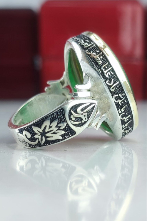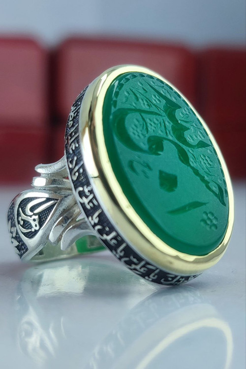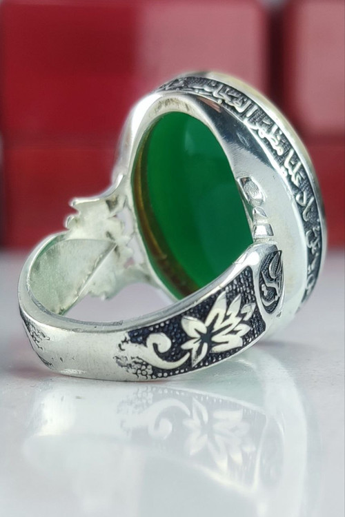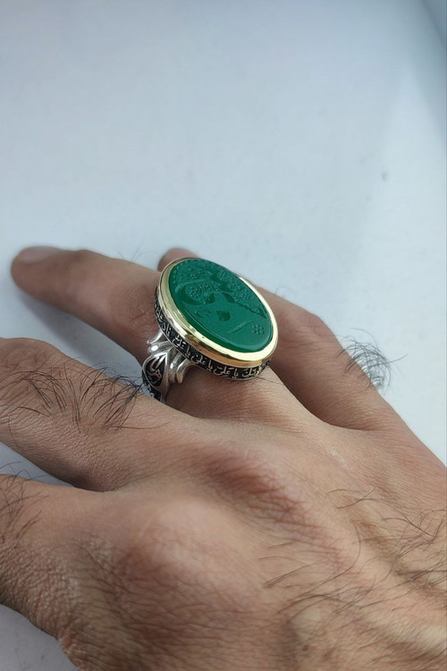 Men's ring, green agate, engraved by Hasbi Allah