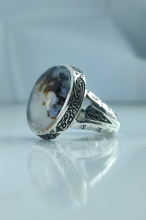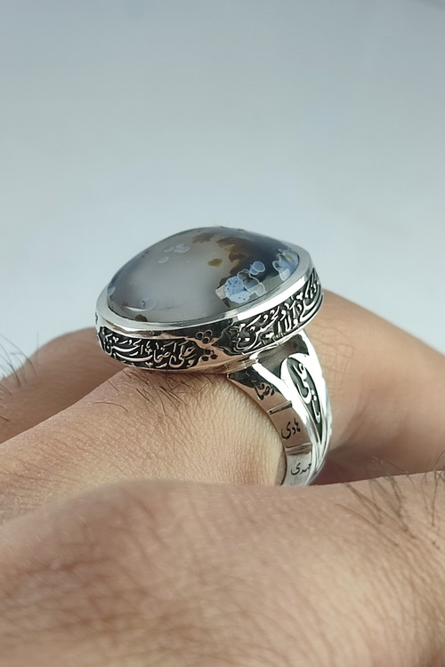 انگشتر نقره مردانه شجر دور آیه چهار سلام امام حسین (ع) کد ۱۰۱۲