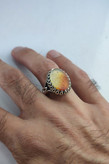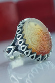 Two-tone red agate silver ring with Amn Al-Mutawakkul engraving