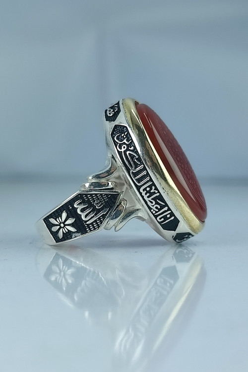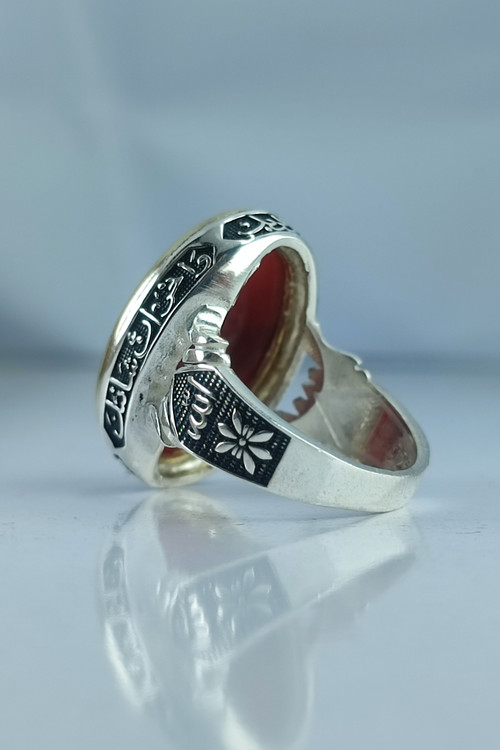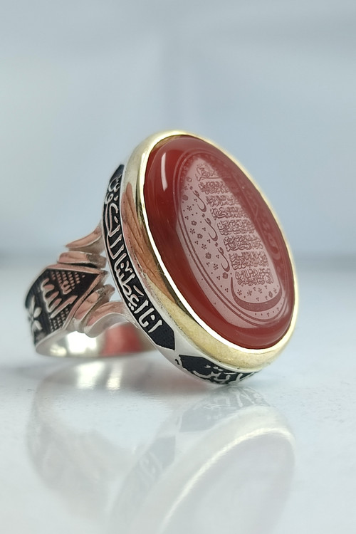 انگشتر نقره مردانه عقیق با حکاکی چهار قل و دور آیه سوره کوثر کد 1013
