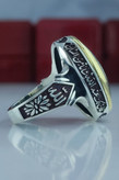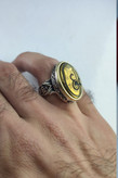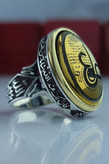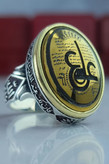 انگشتر نقره مردانه حدید طلایی حکاکی عین علی دور آیه کد ۲۰۴۱