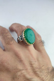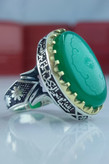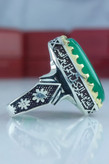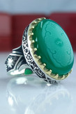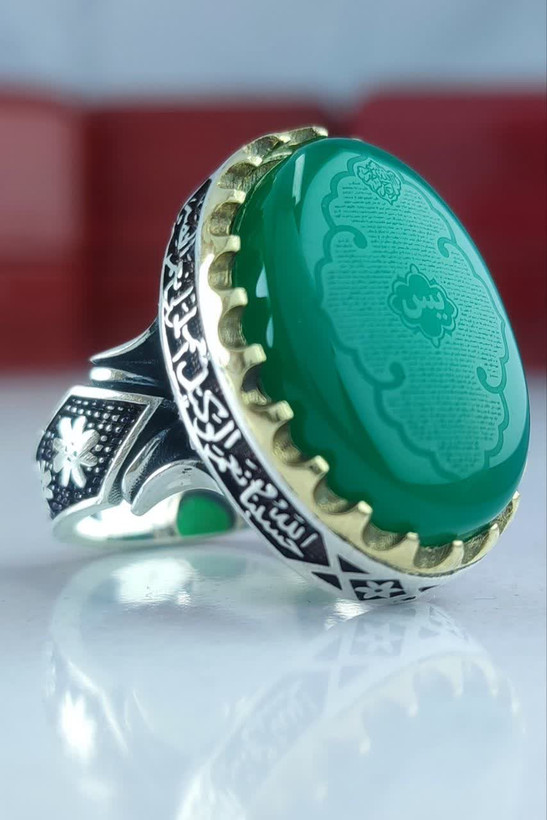 Men's silver ring with green agate and Surah Yasin engraving around the verse