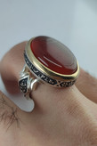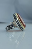 انگشتر نقره مردانه عقیق قرمز حکاکی حرز امام جواد (ع) دور آیه کد ۱۰۱۸