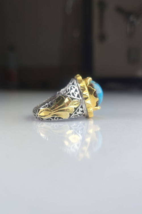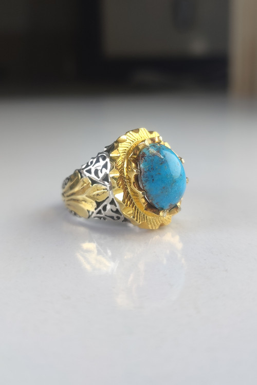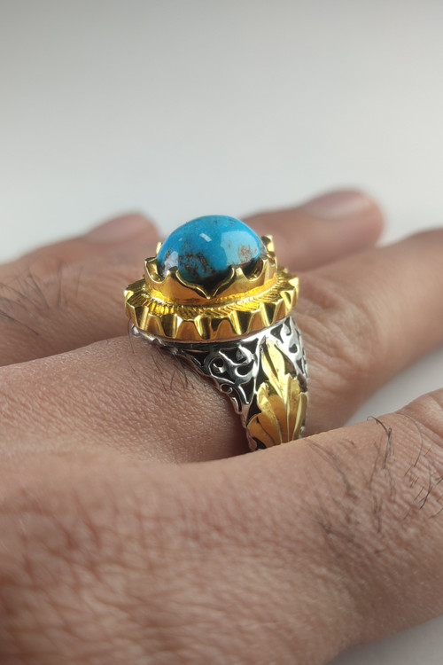انگشتر نقره مردانه دست ساز با سنگ فیروزه کد 1003