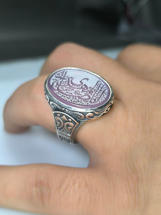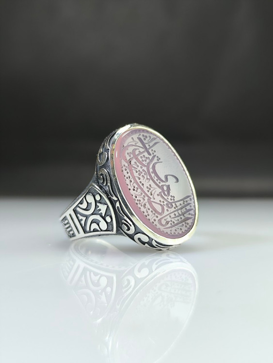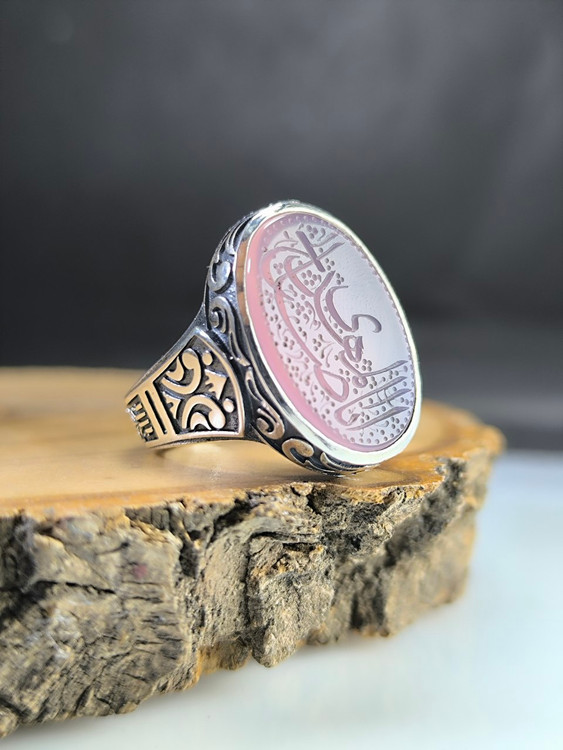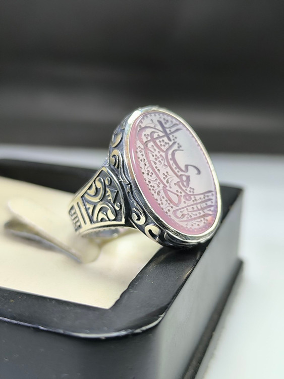 انگشتر نقره مردانه عقیق سوسنی حکاکی یا ابا صالح المهدی کد ۱۰۳۶