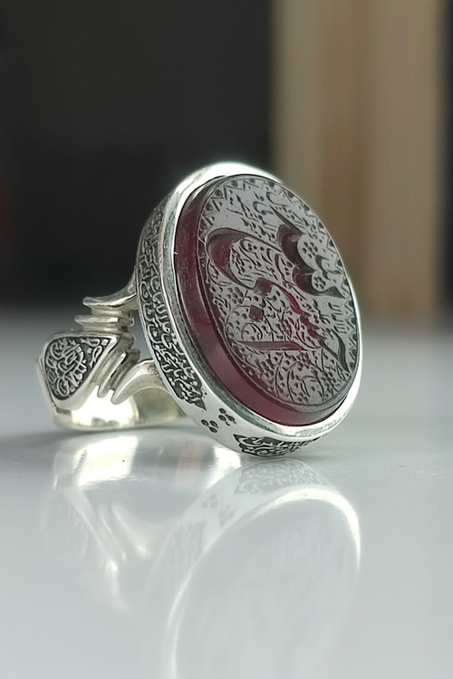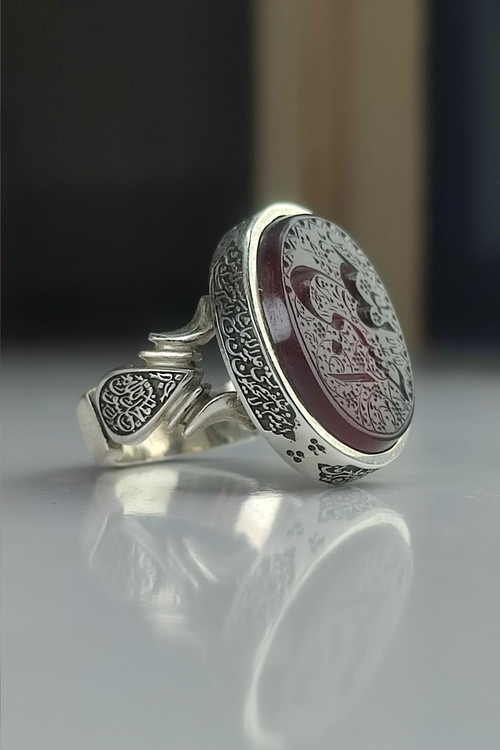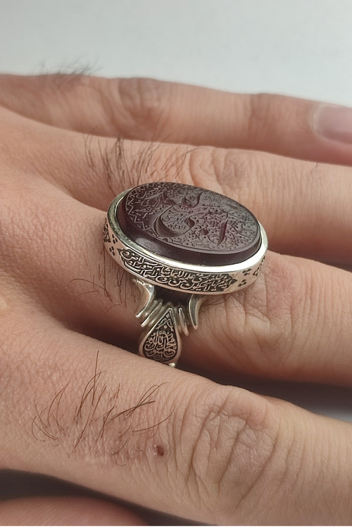 انگشتر نقره مردانه عقیق با حکاکی حسبی الله کد 1002