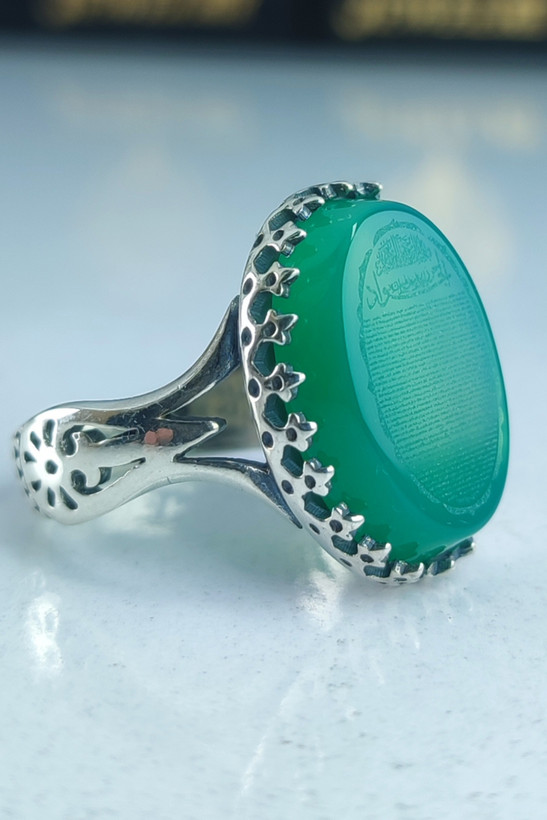 انگشتر نقره مردانه عقیق سبز حکاکی حرز امام جواد (ع) کد 1039