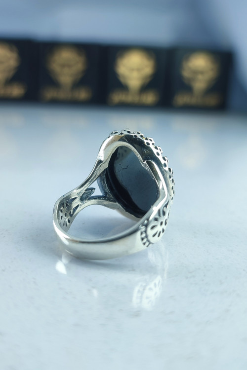 انگشتر نقره مردانه سنگ حدید حکاکی حرز امام جواد (ع) کد 1042