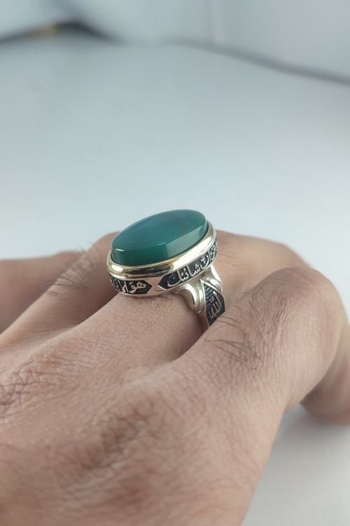 انگشتر نقره مردانه عقیق سبز سوره کوثر حرز امام جواد کد 1052
