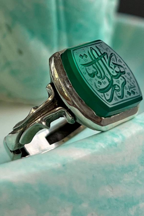 انگشتر نقره مردانه عقیق سبز حکاکی یا کریم اهل البیت (ع) ۱۰۵۷
