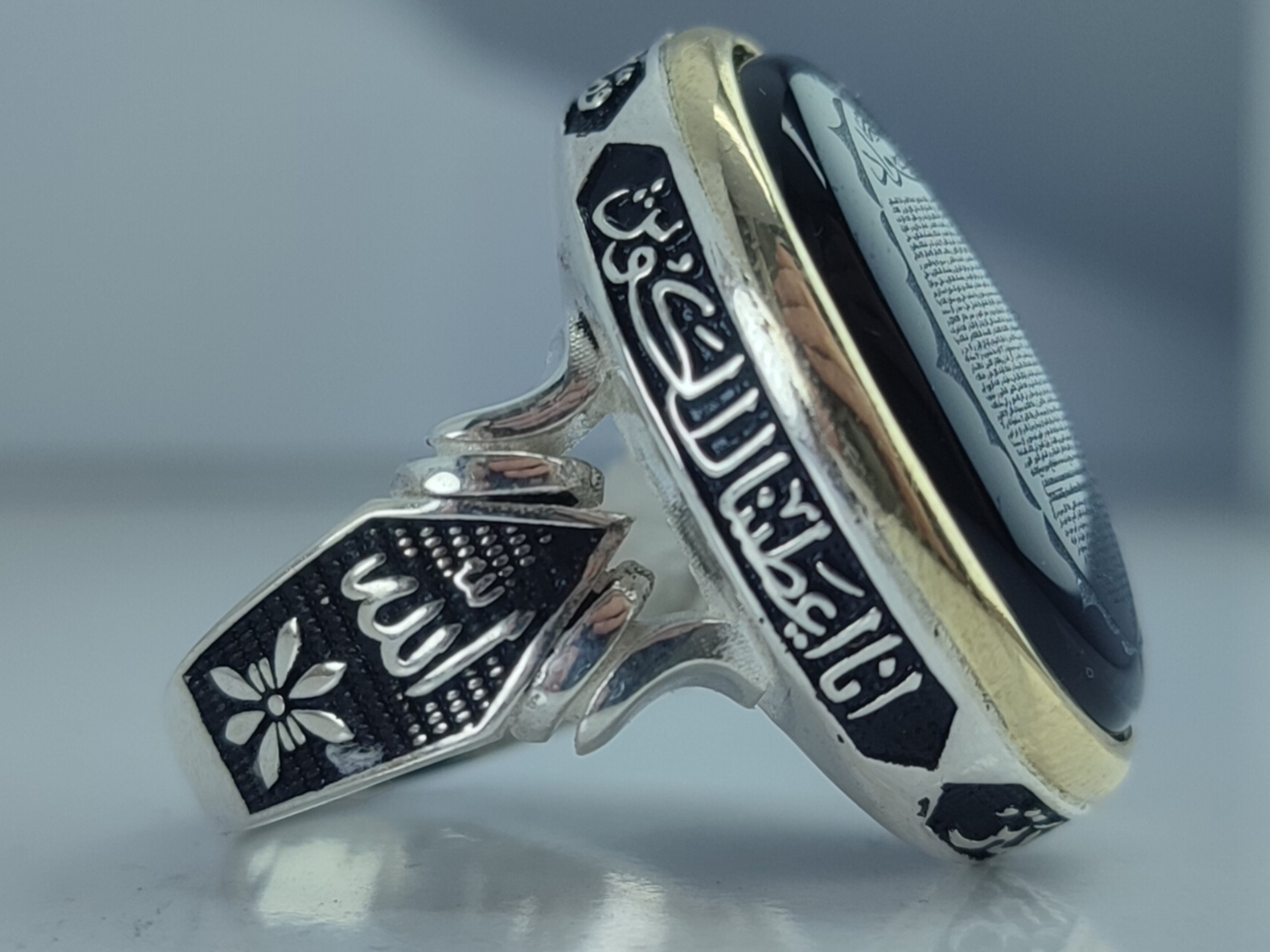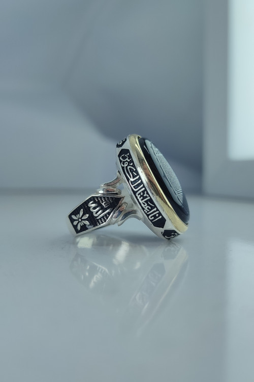انگشتر نقره مردانه عقیق مشکی با حرز امام جواد (ع) و سوره کوثر کد ۱۰۰۷