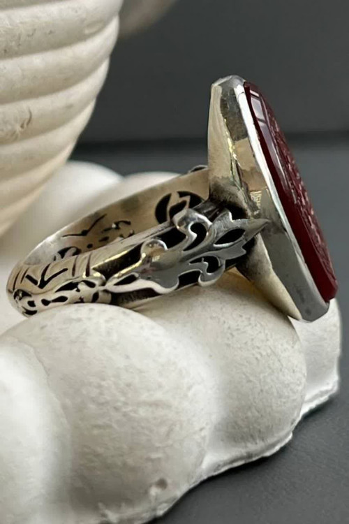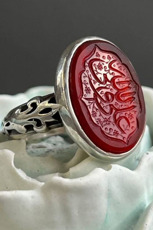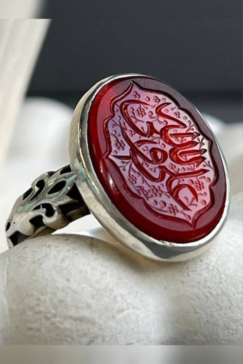 انگشتر نقره مردانه عقیق خراسانی دو رنگ حکاکی علی ولی الله کد 1069