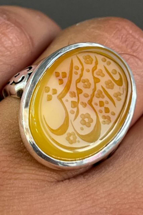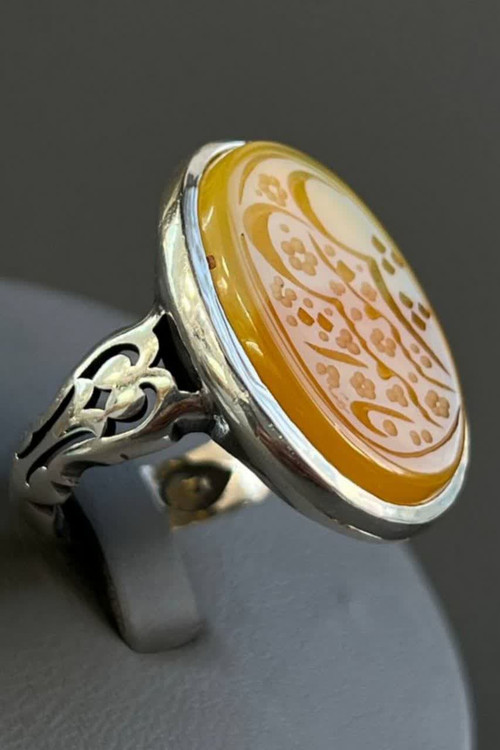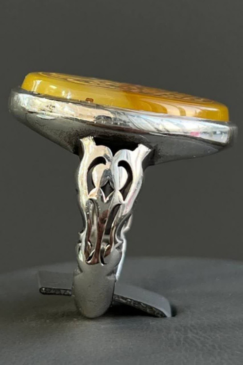 انگشتر نقره مردانه عقیق زرد حکاکی یا شمس الشموس کد1071