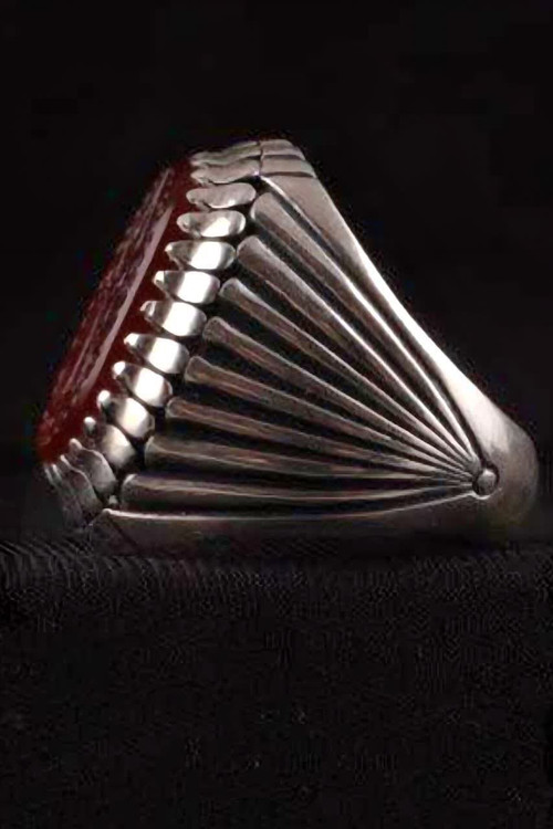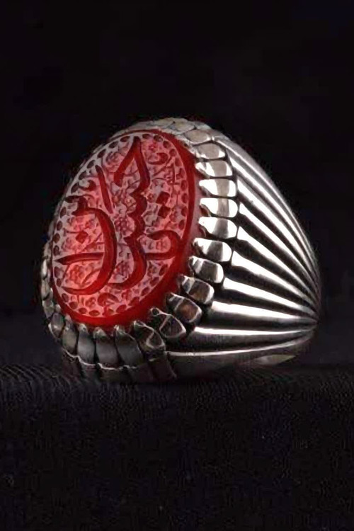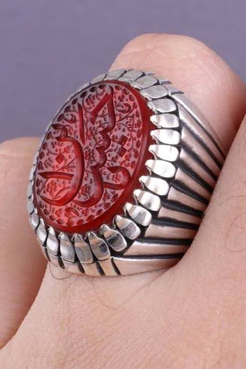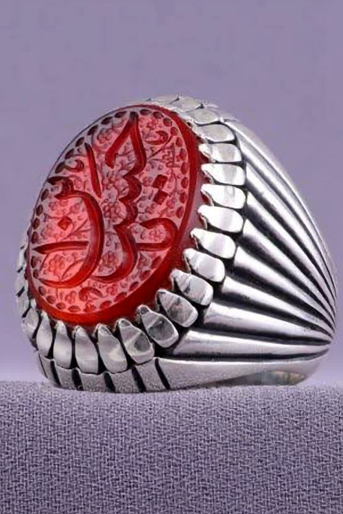 انگشتر نقره مردانه عقیق سرخ خراسانی حکاکی یا حسین (ع) کد 1077