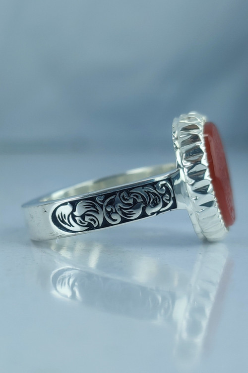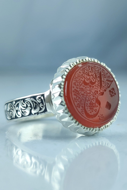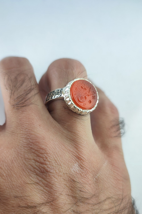 انگشتر نقره مردانه عقیق یمنی پرتقالی حکاکی حسبی الله کد 1079