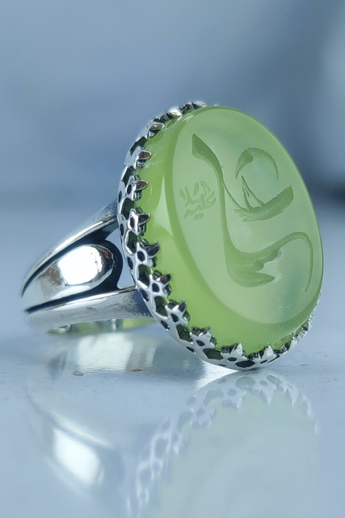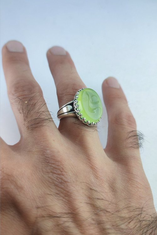 انگشتر نقره مردانه عقیق سبز حکاکی علی (ع) کد 2002